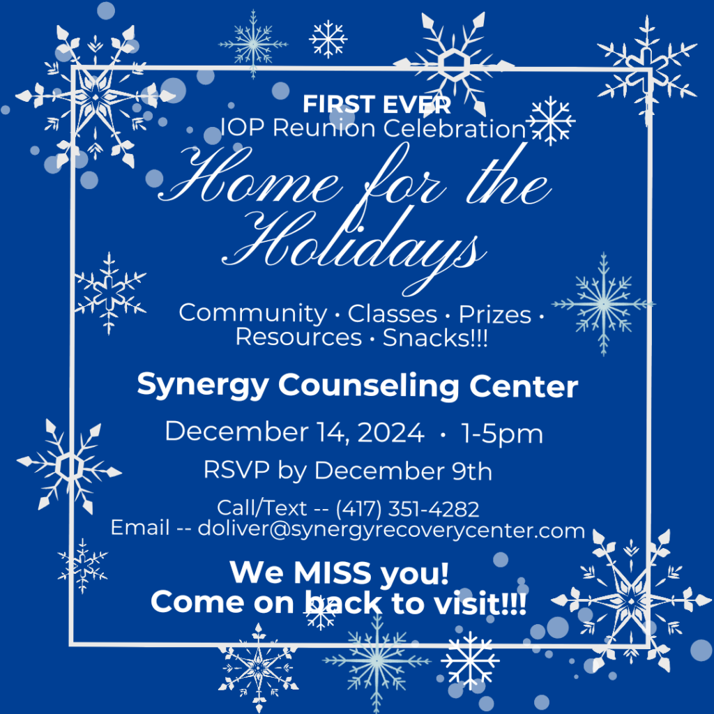 RSVP by December 9th by calling or texting (417) 351-4282 or by emailing Darla at doliver@synergyrecoverycenter.com
